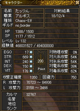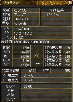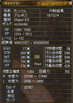 200ポイント残しているのはVITに振るかSTRに振るかまだ迷っ・・・ゲフゲフ