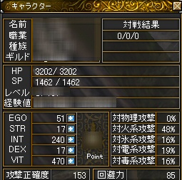 防御系統が最悪な職ですが、↓のステでも十分に狩れます