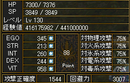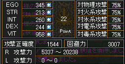 VITに全振りするか、EGO・INTにも振るか迷っている為とあるレベルから一切ステ振っていないというチキンぷりです(^ω^)